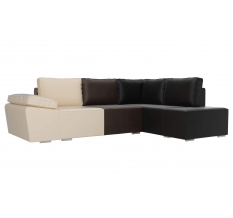 Диван Угловой Амстердам Микровельвет Бежевый Эко Кожа Коричневый Левый